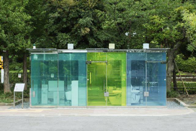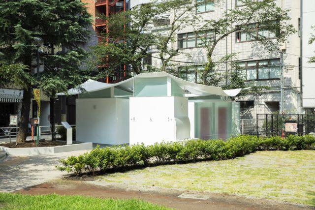 Selon Shigeru Ban, il y a deux choses qui nous préoccupent lorsque nous entrons dans des toilettes publiques, surtout celles situées dans un parc. La première est la propreté, et la deuxième est de savoir si quelqu’un est à l’intérieur. En utilisant la dernière technologie, le verre extérieur devient opaque lorsque la porte est verrouillée. Cela permet aux utilisateurs de vérifier la propreté (grâce à la transparence du verre) et de savoir si quelqu’un utilise les toilettes depuis l’extérieur. La nuit, l’installation illumine le parc comme une belle lanterne.