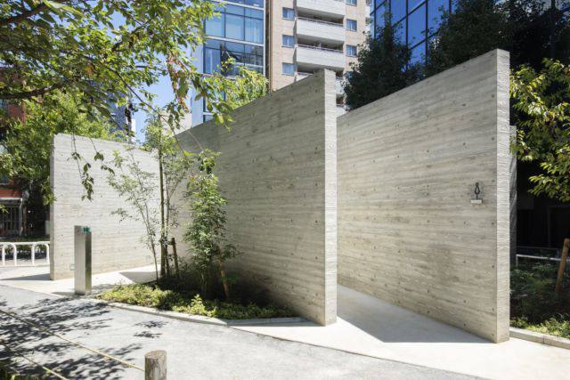 Le site du projet, Ebisu Est, est un parc de quartier populaire utilisé comme aire de jeux pour enfants et rempli de verdure luxuriante. Maki veut que cette installation fonctionne non seulement comme des toilettes publiques, mais aussi comme un espace public servant de pavillon de parc équipé d’une aire de repos.