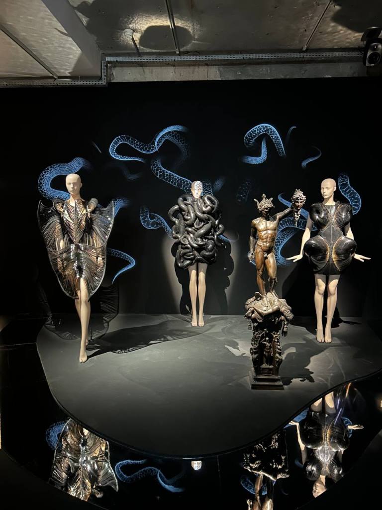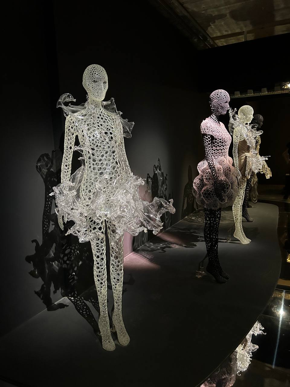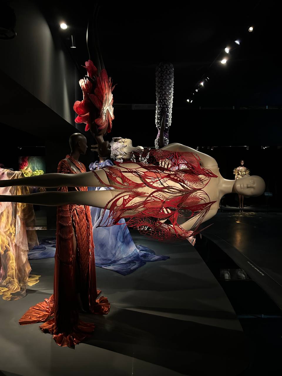 Une sélection de plus de 100 pièces de haute couture réalisées par la créatrice dialoguent avec des œuvres d’art contemporain, telles que celles de Philip Beesley, du Collectif Mé, Wim Delvoye, Rogan Brown, pour n’en citer que quelques-uns. Mais également des créations de design de Neri Oxman, Ren Ri, Ferruccio Laviani et Tomáš Libertíny, et des pièces provenant des sciences naturelles comme des coraux ou des fossiles créant une résonance unique avec des pièces historiques.