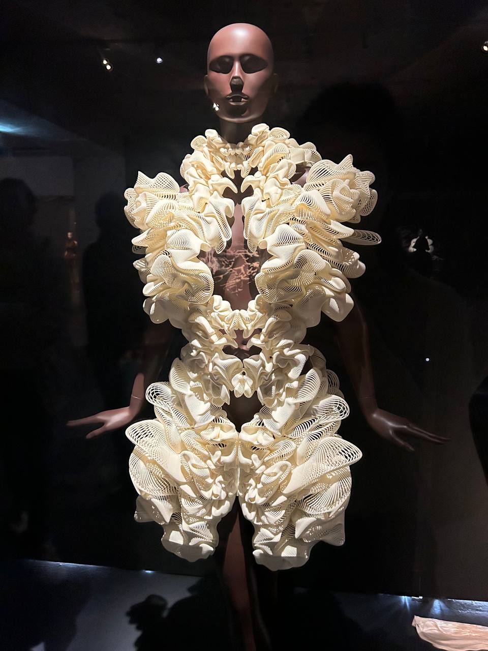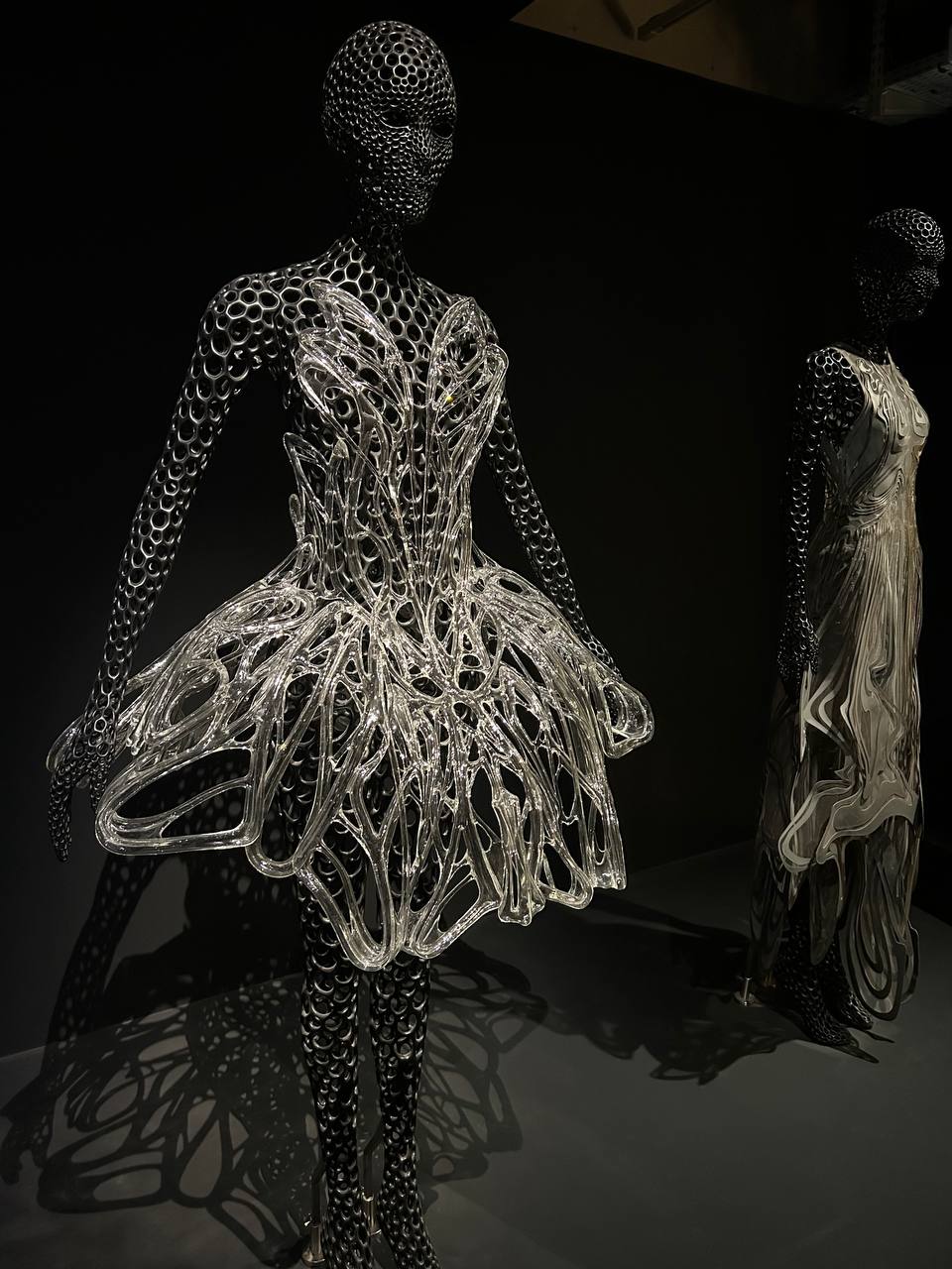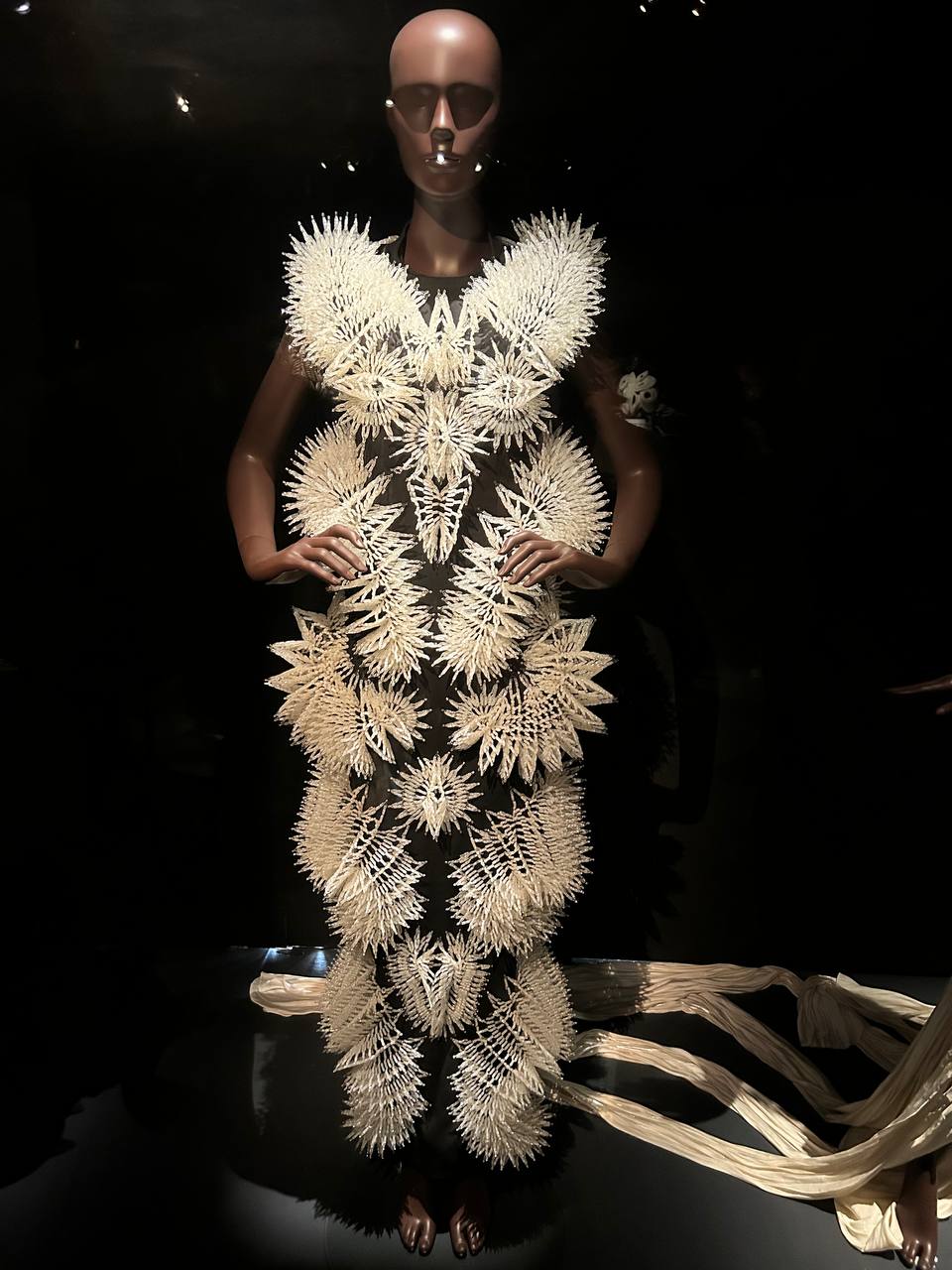 Le thème du squelette (dans la section suivante) est inauguré par la robe Skeleton faisant écho au squelette hybride d’une oeuvre de l’artiste japonais Heishiro Ishino.