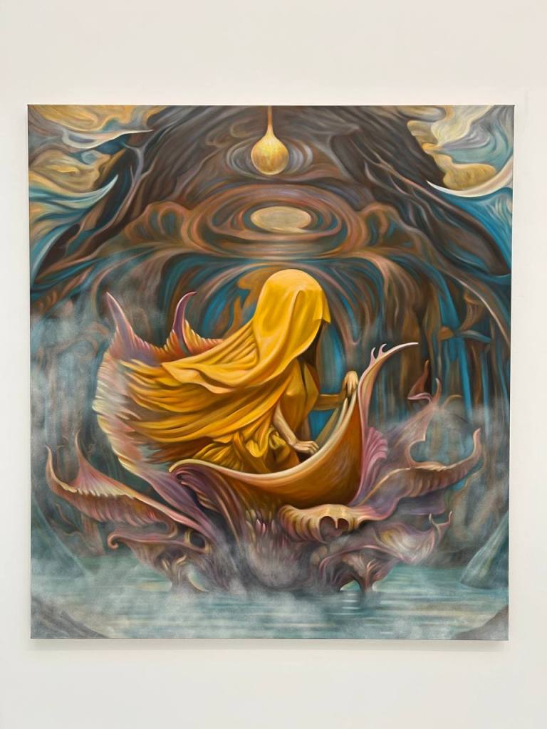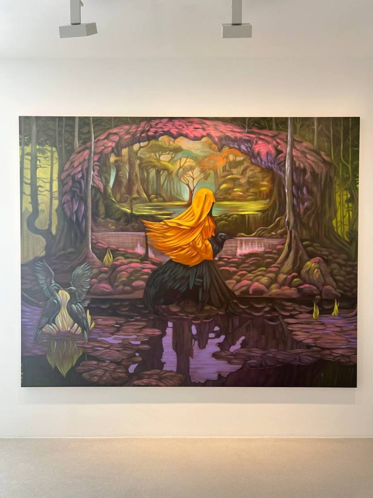 Xa cite Odilon Redon et Gustave Moreau, peintres du mouvement symboliste parisien de la fin du XIXe siècle, comme inspirations pour son nouveau groupe de peintures présenté dans cette exposition. La palette de couleurs est variée et les nuances s’harmonisent très bien entre elles.