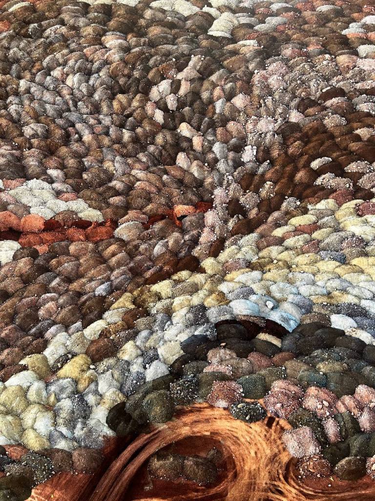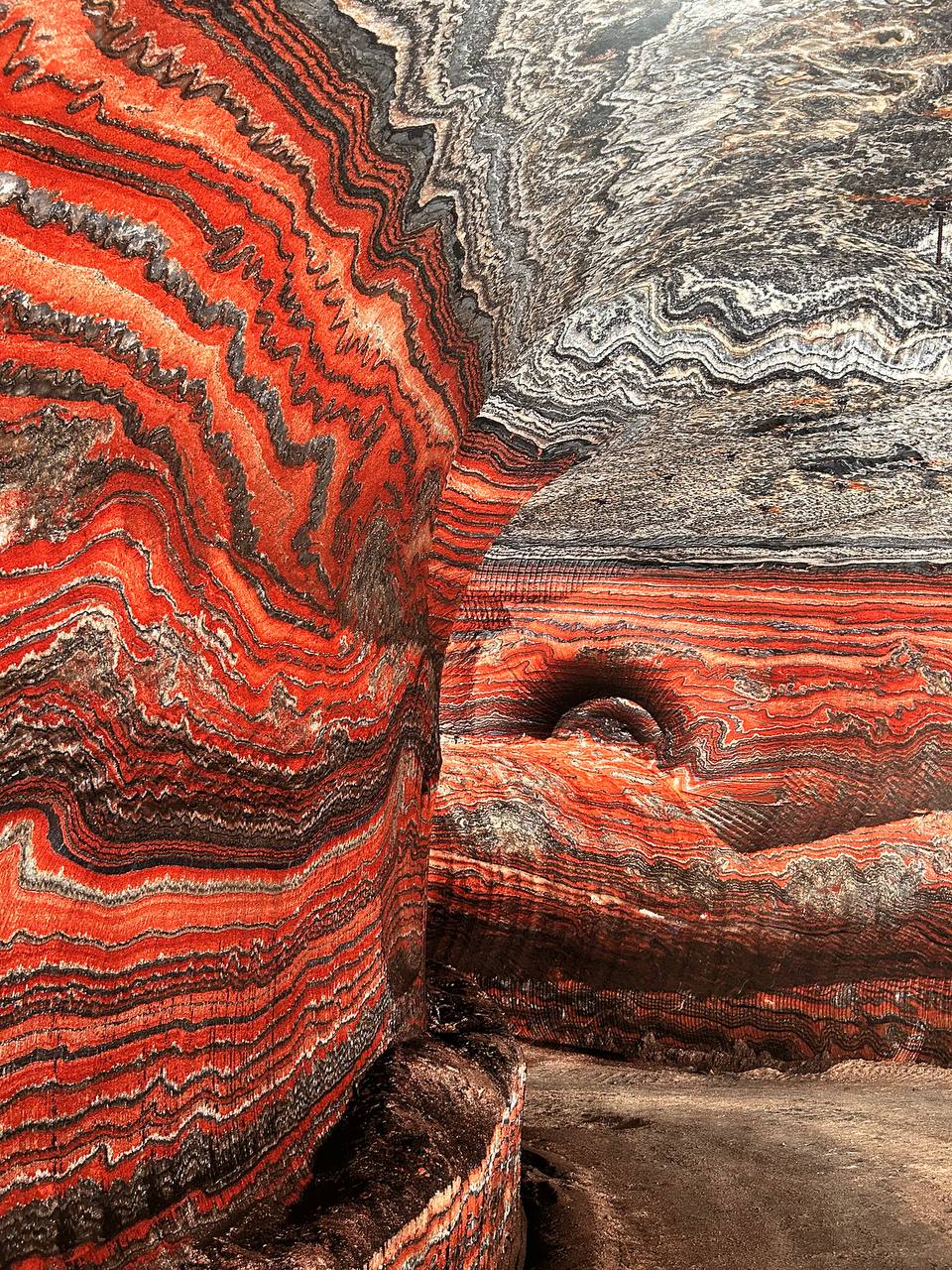 Avec ces couleurs saisissantes parfois juxtaposées entre-elles, nous pourrions nous demander si Burtynsky a d’une manière ou d’une autre retouché les couleurs de ses photographies par quelque tour de magie numérique. Mais dans la perspective plus large qu’offre une exposition rétrospective, nous pouvons voir clairement qu’il ne se livre pas à des manipulations esthétiques pour le plaisir, ni même pour un effet émotionnel. Par exemple, Burtynsky veut que nous éprouvions le choc de voir comme un fait un ruisseau orange vif couler à travers un paysage dépouillé.