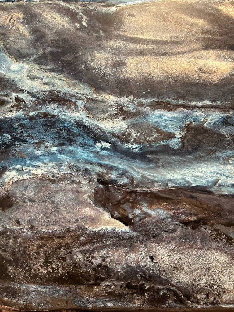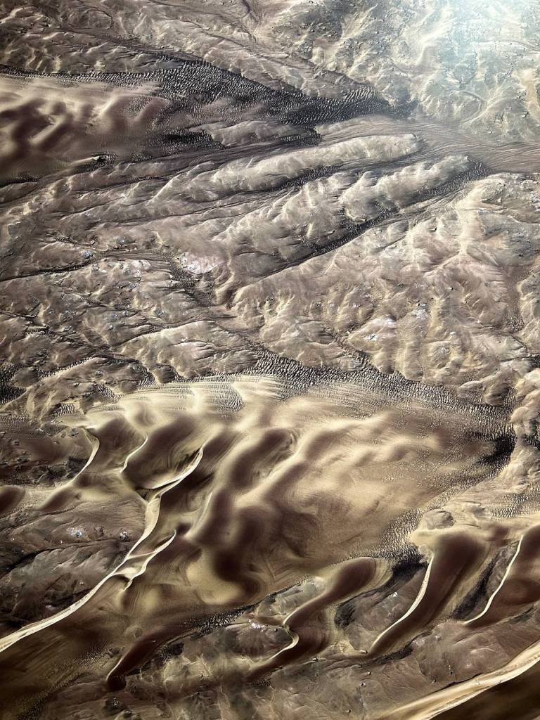 Dans certaines photographies, apparaissent des paysages où l’eau est rare ou à jamais compromise, devenus des déserts. On y trouve des incursions à grande échelle imposées à la Terre pour exploiter et détourner la puissance de l’eau via des anciens puits à degrés en Inde, des canaux modernes et des barrages hydroélectriques. En essayant de satisfaire les besoins croissants d’une civilisation en expansion et très assoiffée, l’humain transforme la Terre de manière colossale. Dans ce nouveau rôle puissant sur la planète, nous sommes également capables de provoquer notre propre perte.