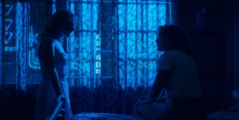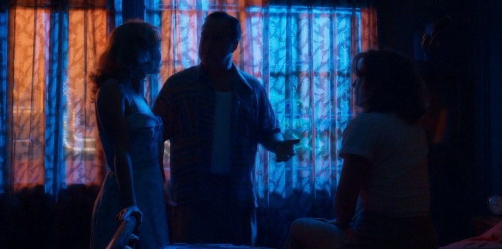 Woody Allen utilise les néons non seulement pour établir une esthétique visuelle distinctive, mais aussi pour renforcer la narration. La lumière change souvent au cours des scènes, reflétant les bouleversements émotionnels des personnages. Par exemple, dans les moments où Ginny est submergée par ses sentiments ou ses regrets, les néons peuvent devenir plus intenses ou envahissants, symbolisant son état émotionnel fragile et instable. En effet, dans des couleurs saturées, l’ambiance de la scène, où Carolina annonce à Ginny qu’il semble y avoir une connexion entre elle et Mickey, n’arrête pas de jongler entre un orange vif et un bleu profond.