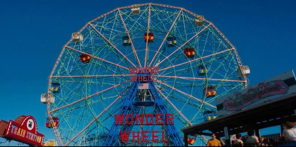 « Wonder Wheel » est un film où le mélodrame personnel se déploie sur fond de lumières vives et de la décadence des parcs d’attractions, soulignant la dichotomie entre l’apparence festive de Coney Island et la vie intérieure tourmentée des personnages.