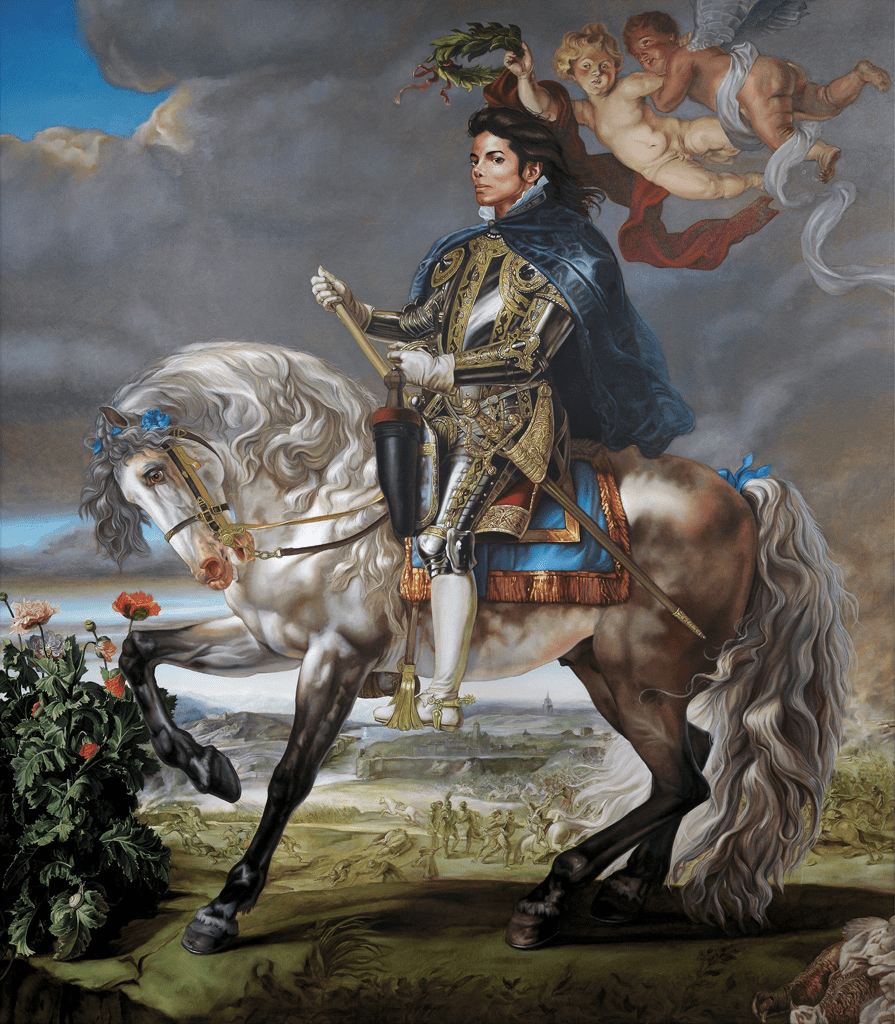 Equestrian Portrait of King Philip II (Michael Jackson) : Parmi les personnalités connues, Wiley a peint un portrait équestre de Michael Jackson, commandé par l’artiste lui-même. L’œuvre est tout simplement monumentale car elle ne mesure pas moins de 325.1 x 284.5 cm. Malheureusement, Michael Jackson nous a quitté la même année, juste avant que l’œuvre soit achevée en 2009, il n’a donc pas eu l’occasion de voir le résultat final.