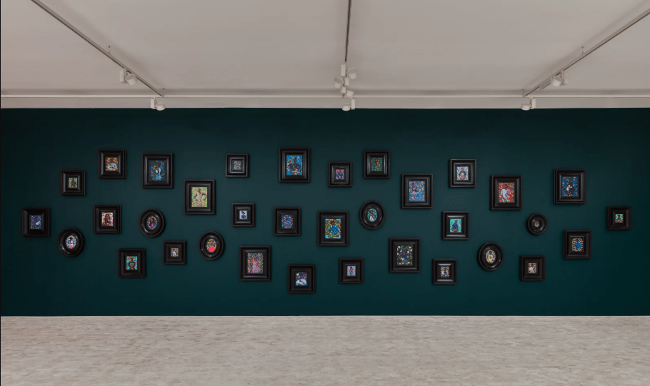 Dans cette nouvelle série, Wiley renverse cette idée et s’approprie la majesté des peintures monumentales pour lesquelles il est connu, en l’appliquant à une échelle miniature. Il invite ainsi le spectateur à remettre en question ses préconceptions concernant le lien entre la taille et le pouvoir dans l’histoire de l’art. Traditionnellement, le petit est souvent perçu comme modeste, mais ici, l’artiste démontre la puissance et la prestance à travers une échelle réduite, tout en bouleversant les normes des hiérarchies de genre et de race.