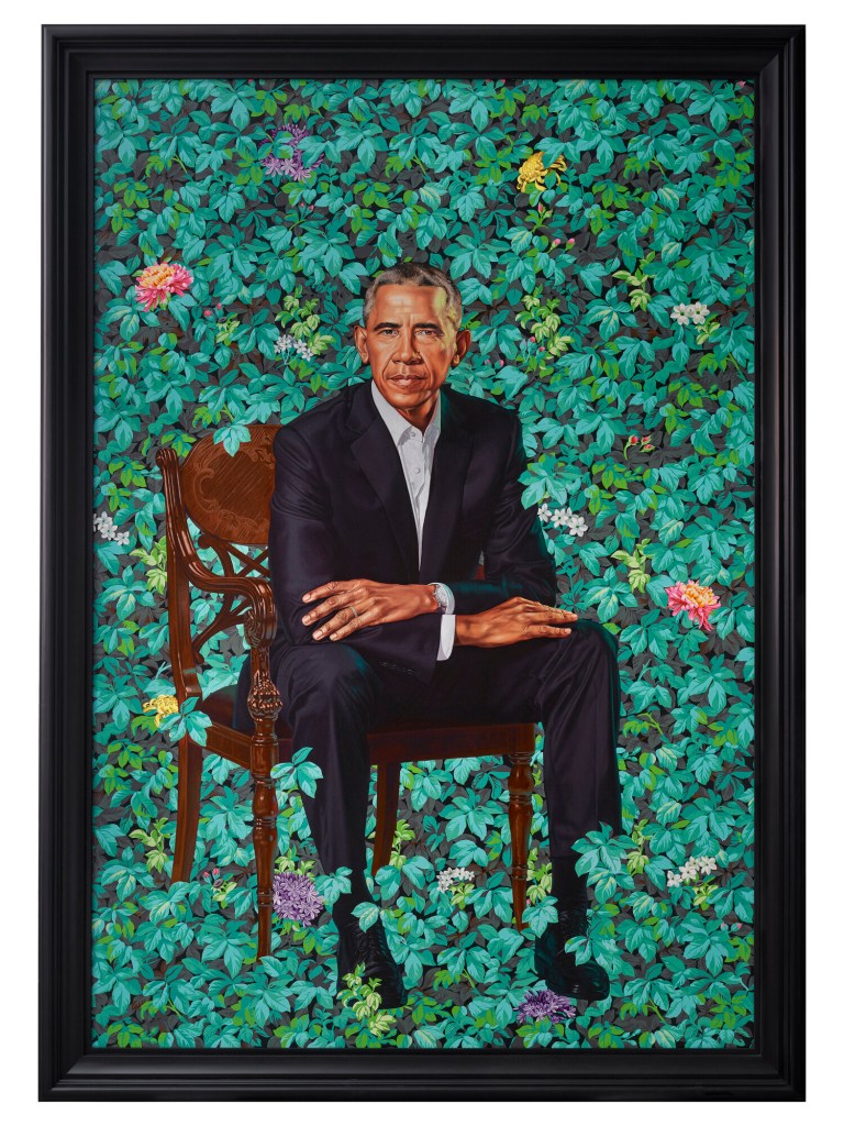 Official Portrait of President Obama : Probablement son œuvre la plus célèbre, le portrait du Président Barack Obama (2018) pour la National Portrait Gallery est un exemple parfait du style de Wiley. Obama est représenté assis de manière décontractée sur une chaise, entouré d’un fond de feuilles et de fleurs, symbolisant des aspects de sa vie personnelle et professionnelle. Ce portrait marque une étape historique en tant que représentation du premier président noir des États-Unis par un artiste noir. L’œuvre a été saluée pour son originalité et son impact visuel.