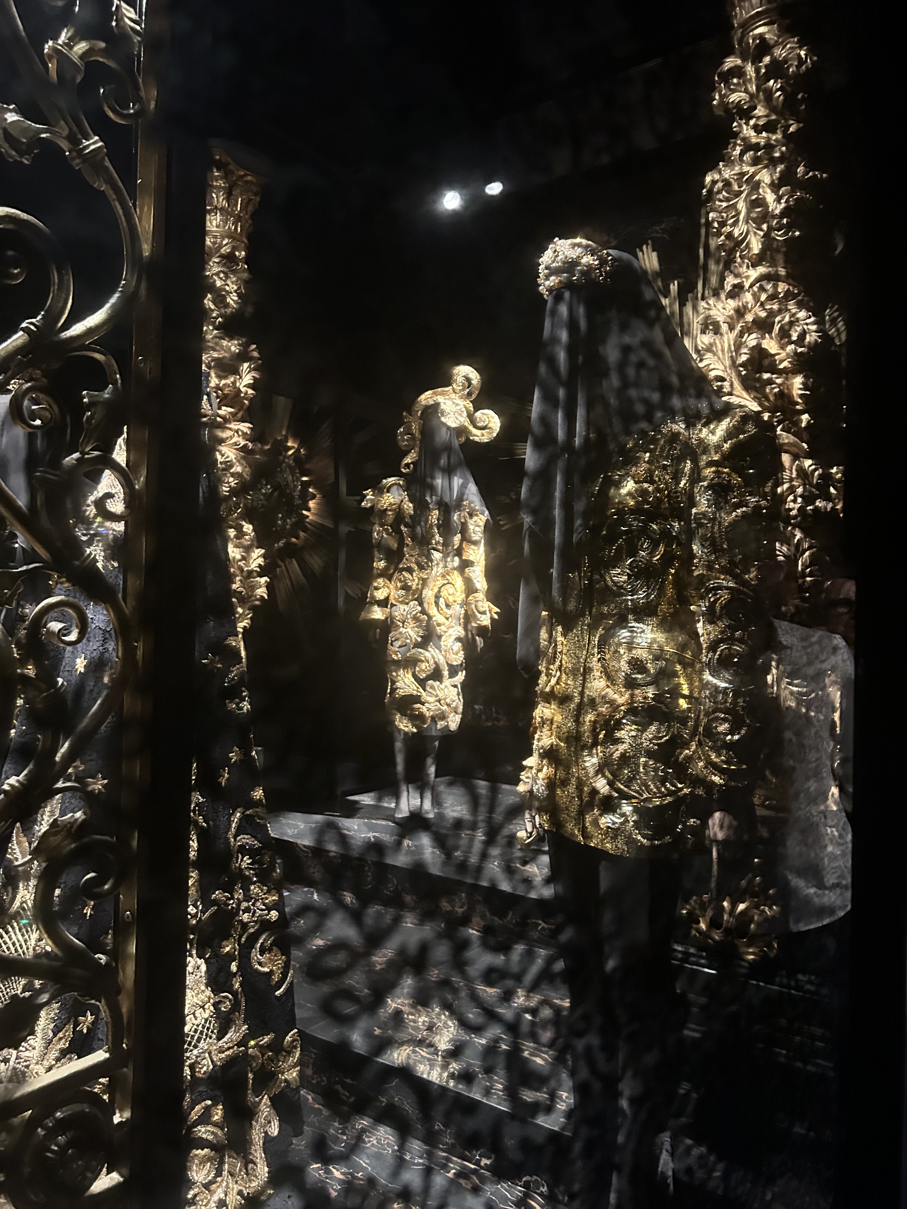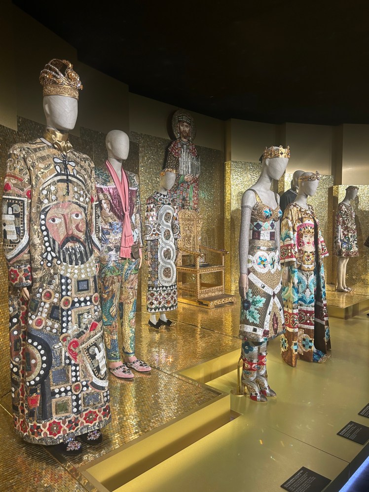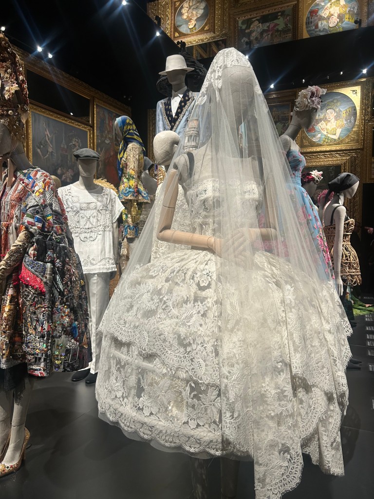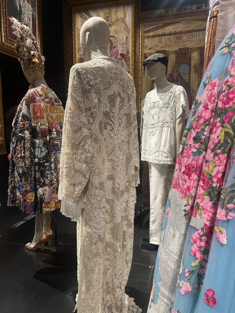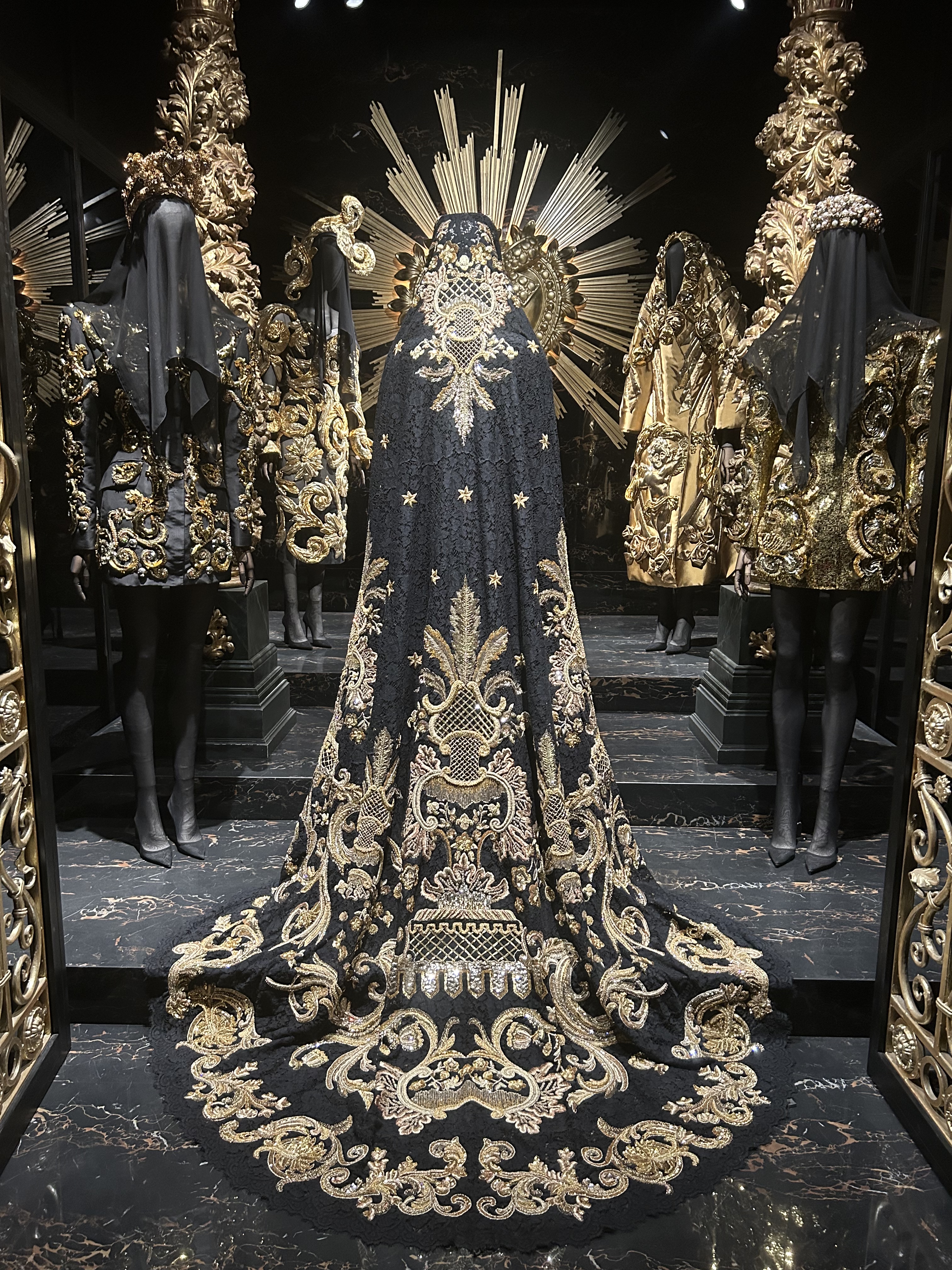 Dolce&Gabbana sont très influencés par le baroque, la religion catholique, et les traditions siciliennes (dentelles, croix, bustiers, imagerie religieuse, etc.) qui font partis des thèmes principaux de l’exposition.