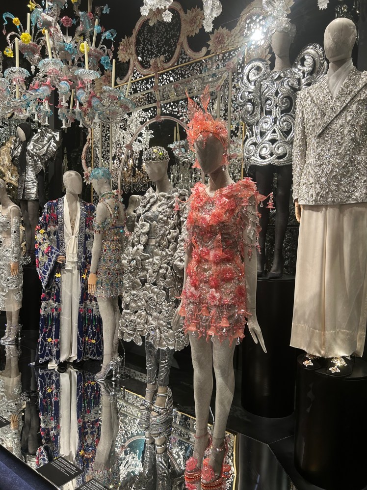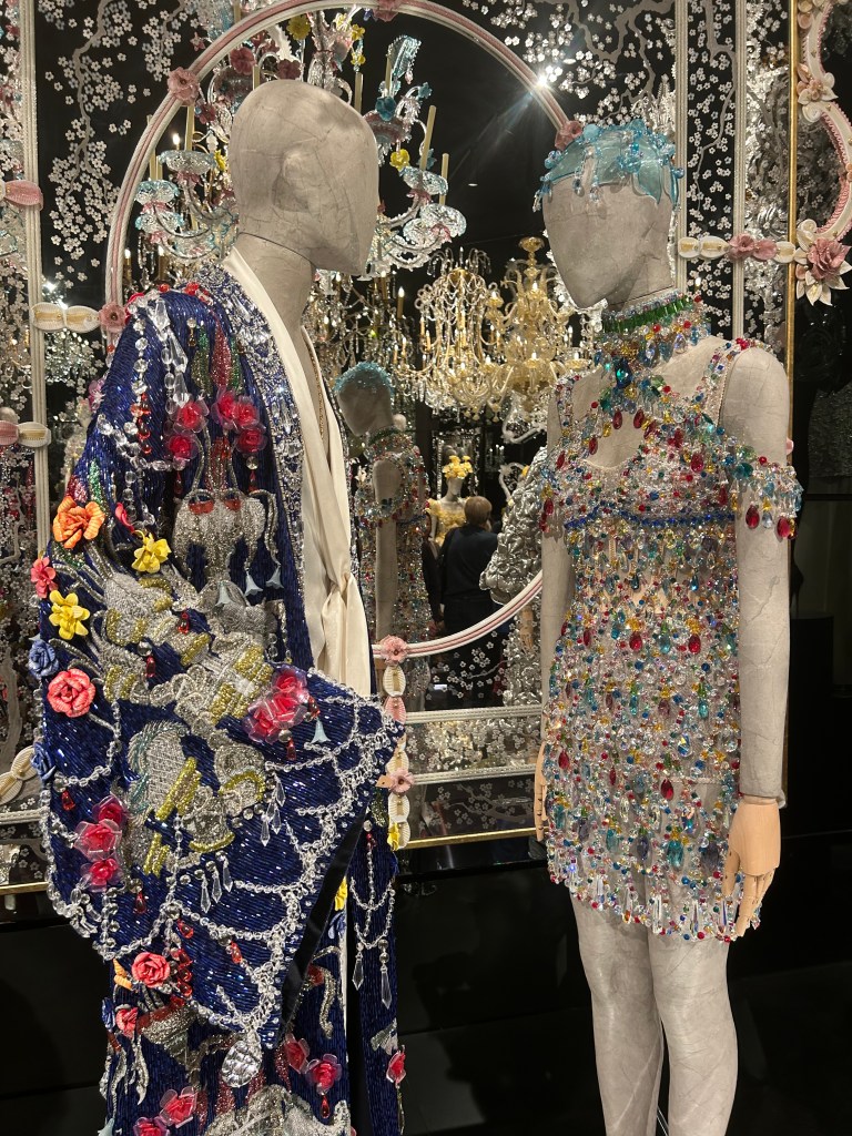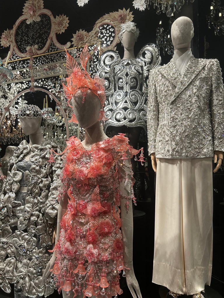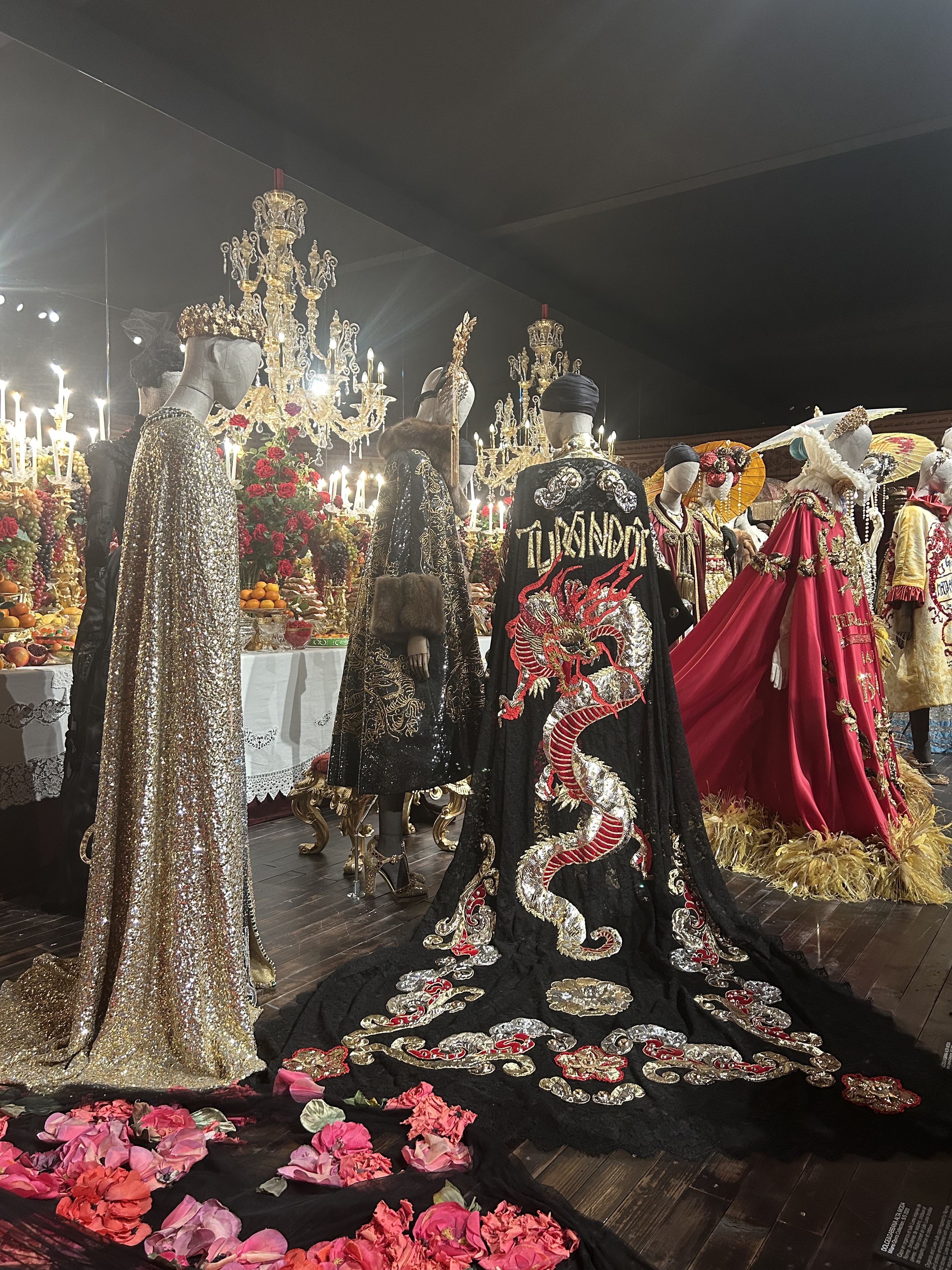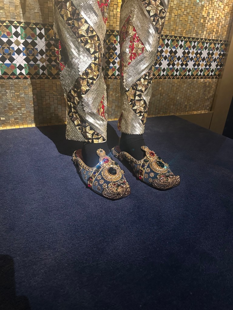 Chaque salle est dédiée à un thème, nous montrant la diversité, l’imagination débordante et la création infinie dont font preuve les deux couturiers. A l’instar des vêtements, les salles sont décorées de manière maximaliste (profusion d’ornements) de telle sorte que la scénographie viendrait presque à rivaliser avec les créations. A chaque nouvel espace, nous sommes immergés dans un univers flamboyant où mocassins, vestons en sequin, robes à dentelle et pantalons en velours se rencontrent. On peut affirmer qu’avec Dolce&Gabbana nous sommes apprêtés de la tête jusqu’au bout des pieds !