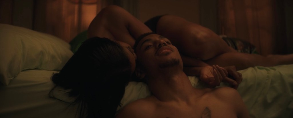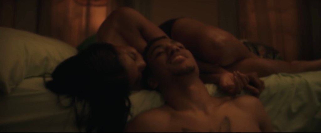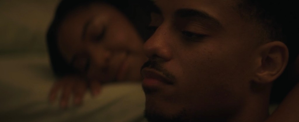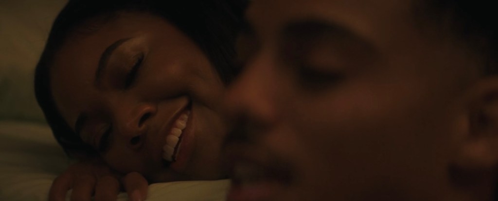 Ce va-et-vient visuel incarne le trouble intérieur des personnages et les sentiments confus. Loin d’un simple effet technique, c’est un choix de mise en scène fort : la profondeur de champ devient une métaphore. L’imprécision volontaire suggère une intimité incertaine, instable, sous tension — comme si leur relation vacillait entre clarté et confusion, sécurité et vulnérabilité. On comprend que Jenna lutte contre ses sentiments : elle résiste à l’idée de s’engager sérieusement avec Eric, craignant de nuire à sa carrière. Cela se confirme dans les dialogues : « Oh, tu es mon homme ? Tu penses que tu es mon homme ? […] J’aurais probablement plutôt dit quelque chose comme fruit défendu. » Et lorsqu’elle insiste sur la confidentialité de leur relation (« Ce qui arrive entre nous, reste entre nous »), elle marque clairement la frontière entre désir et danger, entre le privé et le compromis professionnel.