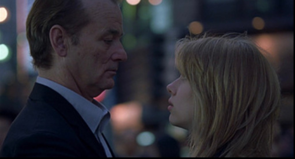 En reliant visuellement deux sujets dans un même plan, le flou établit un rapport (émotionnel, causal ou symbolique) entre eux. On peut passer du visage d’un personnage à un autre, révélant ses pensées ou ses sentiments. Dans Lost in Translation (2003), un moment de bascule très signifiant s’opère lors du karaoké où Bill Murray est net au premier plan tandis que Scarlett Johansson est floue au second-plan, puis une bascule de point qui en dit long sur ce qui est en train de se tramer entre les deux personnages.